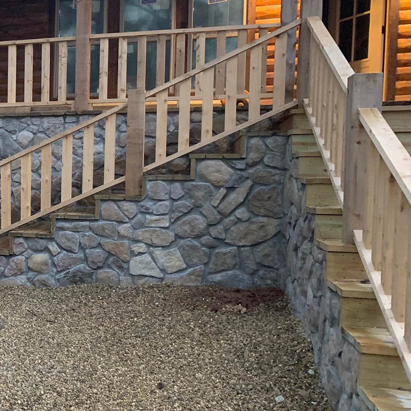 A rough-textured, highly varied stone style featuring sizes ranging from 4.5” to 15’’. A grouted, elegant style, designed to exude a rugged yet classic look.